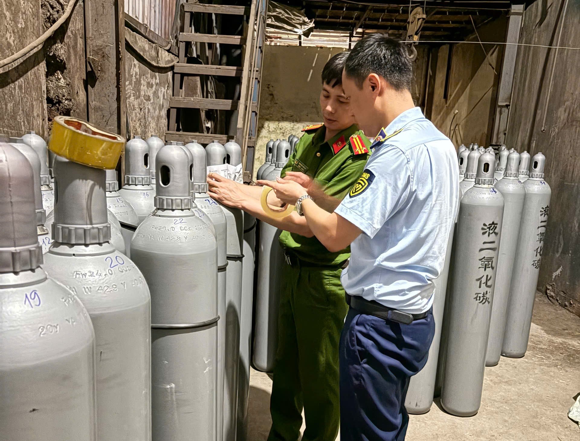 Tại thời điểm kiểm tra, lực lượng chức năng phát hiện hai cơ sở này đang kinh doanh tổng cộng 3.025kg khí nghi là khí N2O (thường gọi là “khí cười”), được chứa trong 190 chai kim loại. Ước tính trị giá lô hàng vi phạm lên tới hơn 600 triệu đồng.