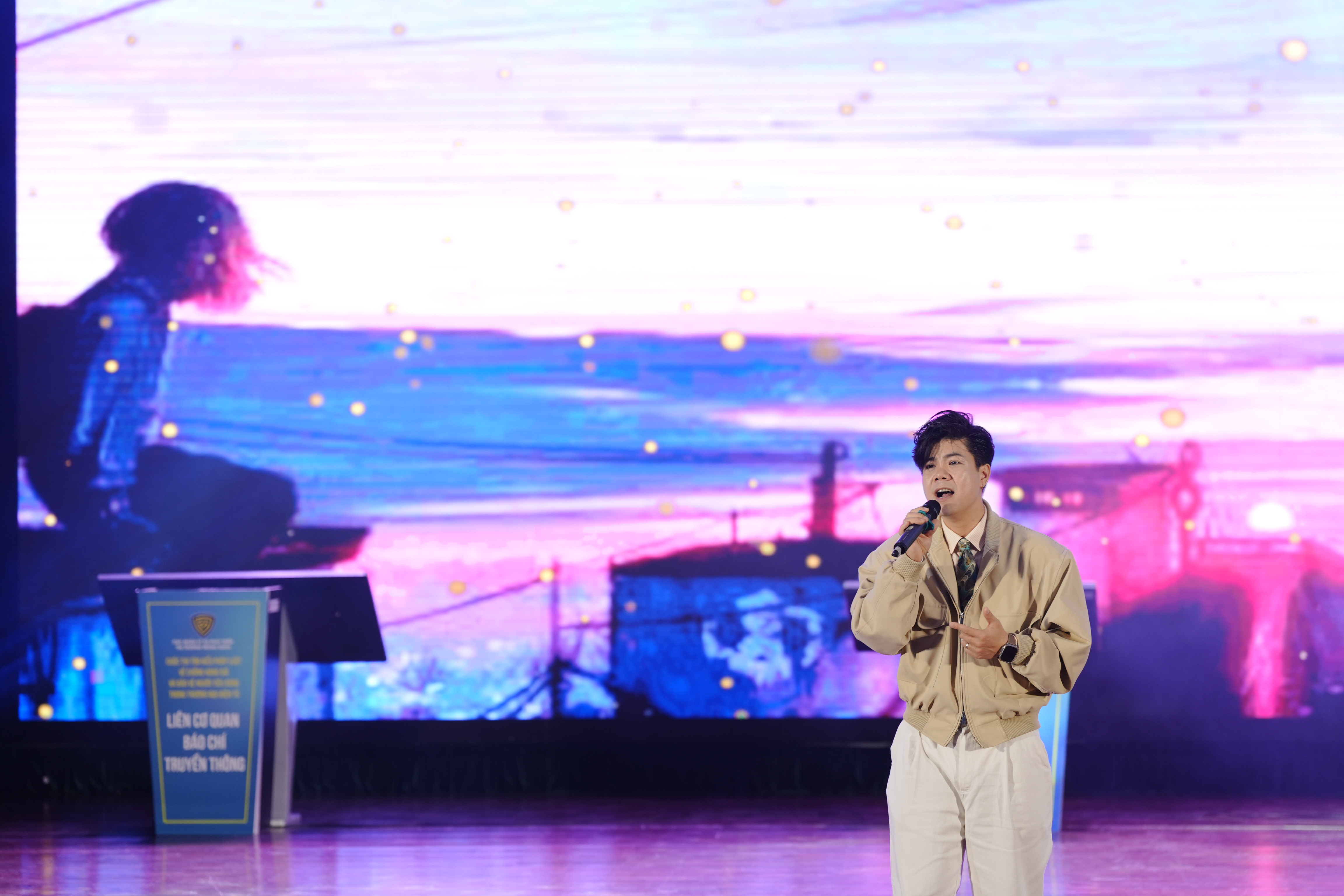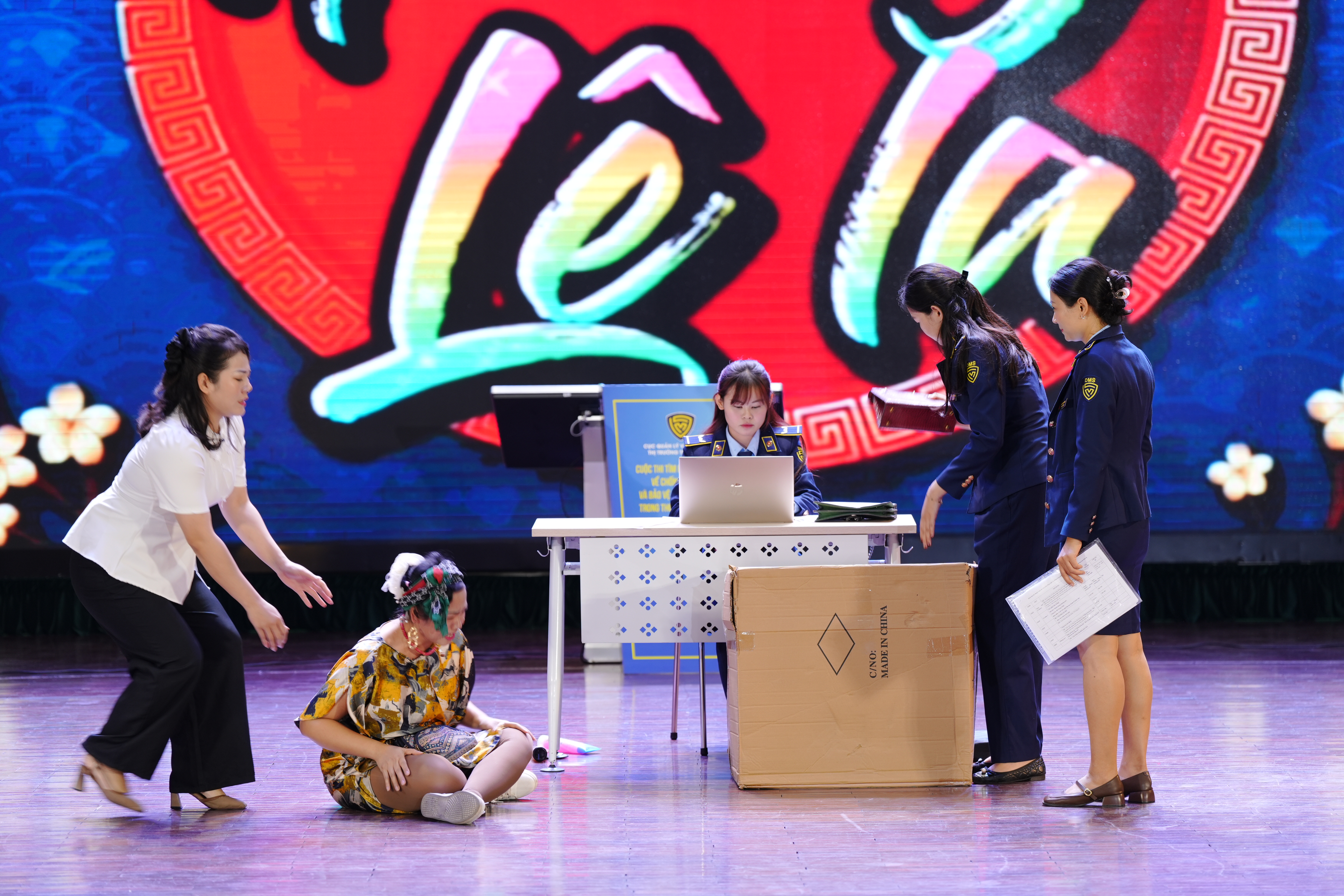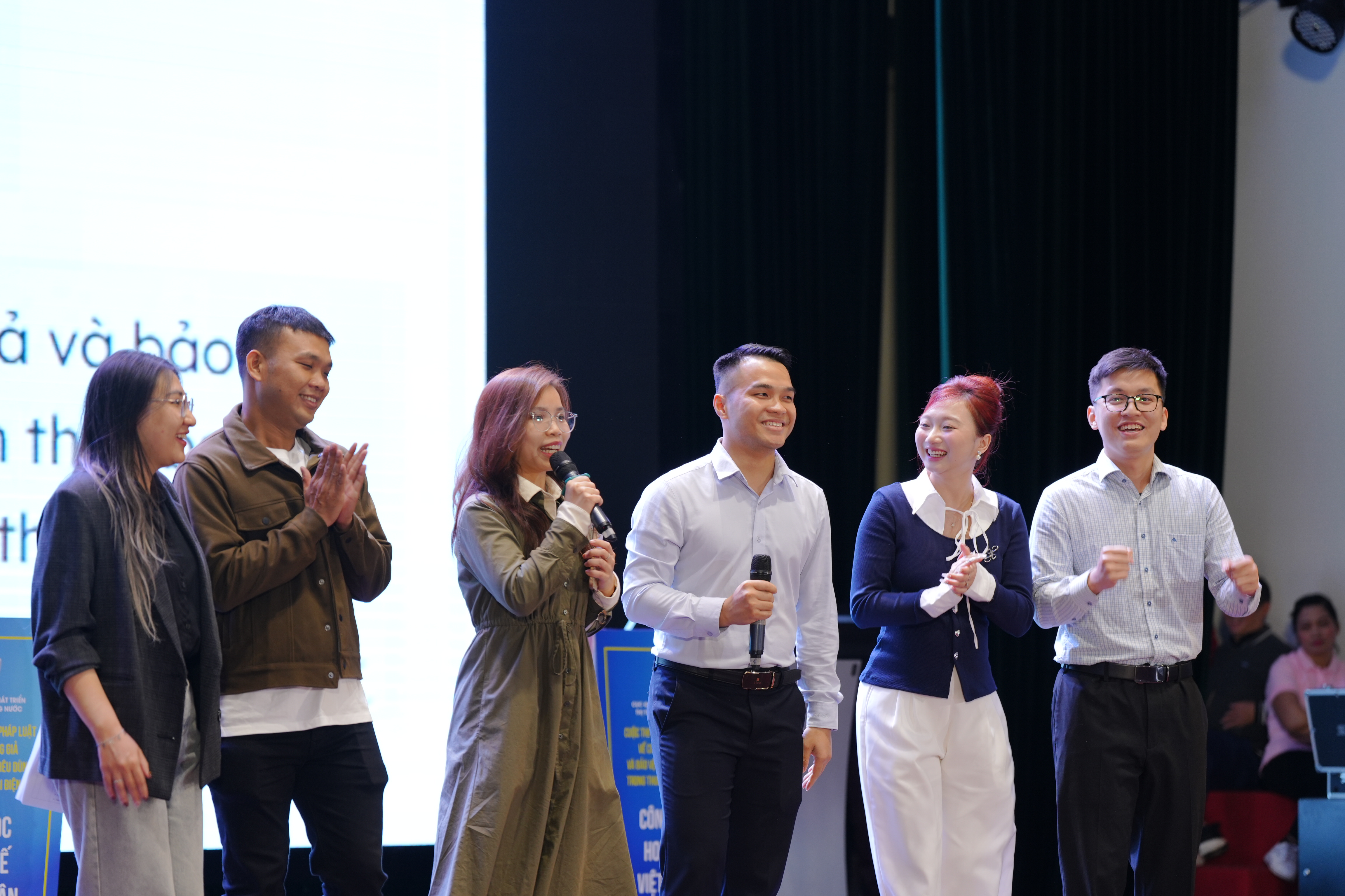Phần thi cover ca khúc tuyên truyền pháp luật thương mại điện tử của các bạn sinh viên đến từ trường Đại học Kinh tế Quốc dân đã gây ấn tượng với ban giám khảo và khán giả trong khán phòng